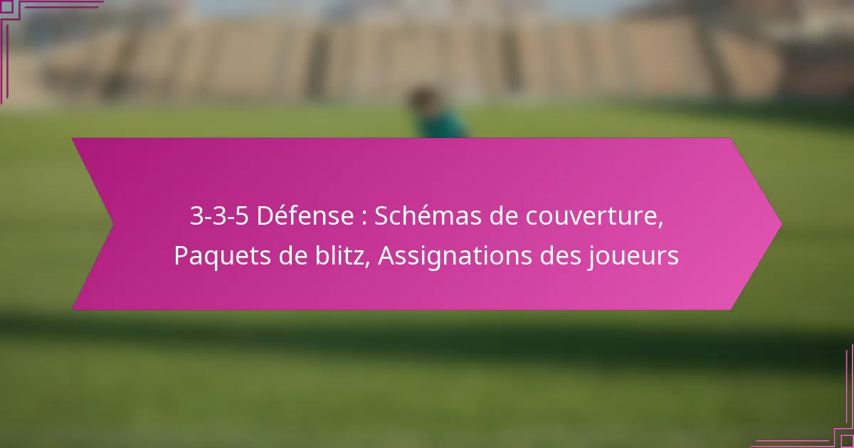 La défense 3-3-5 présente un agencement unique de joueurs conçu pour maximiser la flexibilité et l’adaptabilité face à divers schémas offensifs. Chaque position a des affectations spécifiques qui contribuent à l’efficacité globale de la défense, en se concentrant sur les responsabilités de couverture, les paquets de blitz et la communication sur le terrain.