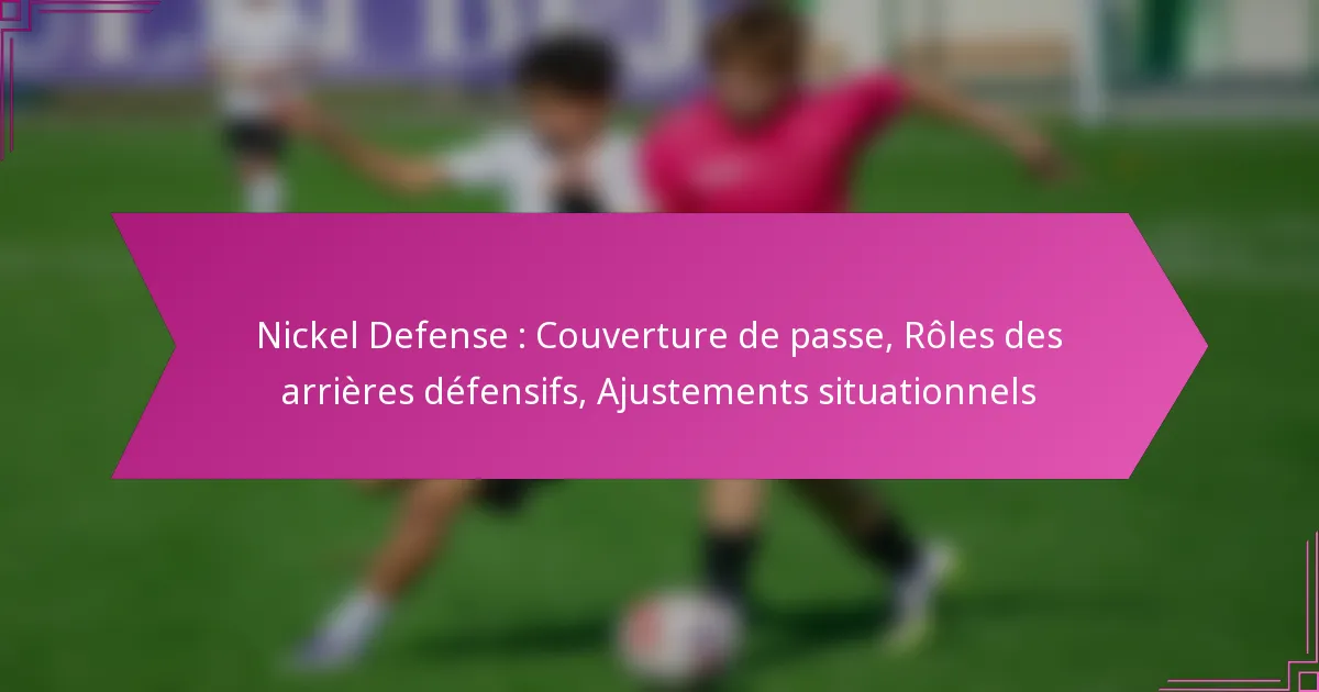 Les équipes effectuent des ajustements situationnels dans la défense nickel en adaptant leurs schémas de couverture en fonction de scénarios de jeu spécifiques, tels que le down et la distance. Ces ajustements sont cruciaux pour optimiser la performance défensive contre les stratégies offensives variées et les confrontations entre joueurs.